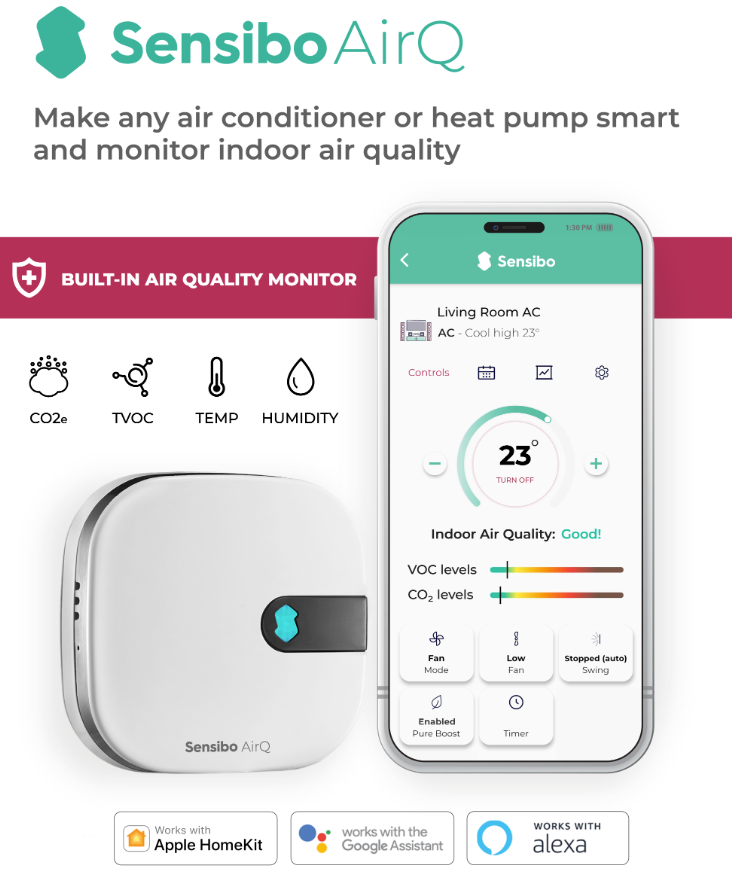 Sensibo Air PRO works with Amazon Echo Google Home & Apple HomeKit. Just one click to link the Air PRO to your Amazon or Google assistant and you're set to go. Control the temperature or check your air quality with your voice.